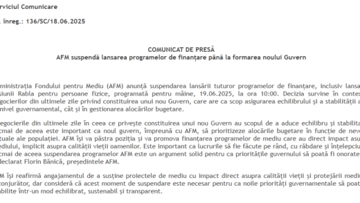 APIA reacționează ferm la anunțul de astăzi al Administrației Fondului pentru Mediu (AFM) privind suspendarea lansării tuturor programelor de finanțare, inclusiv lansarea Rabla Auto...